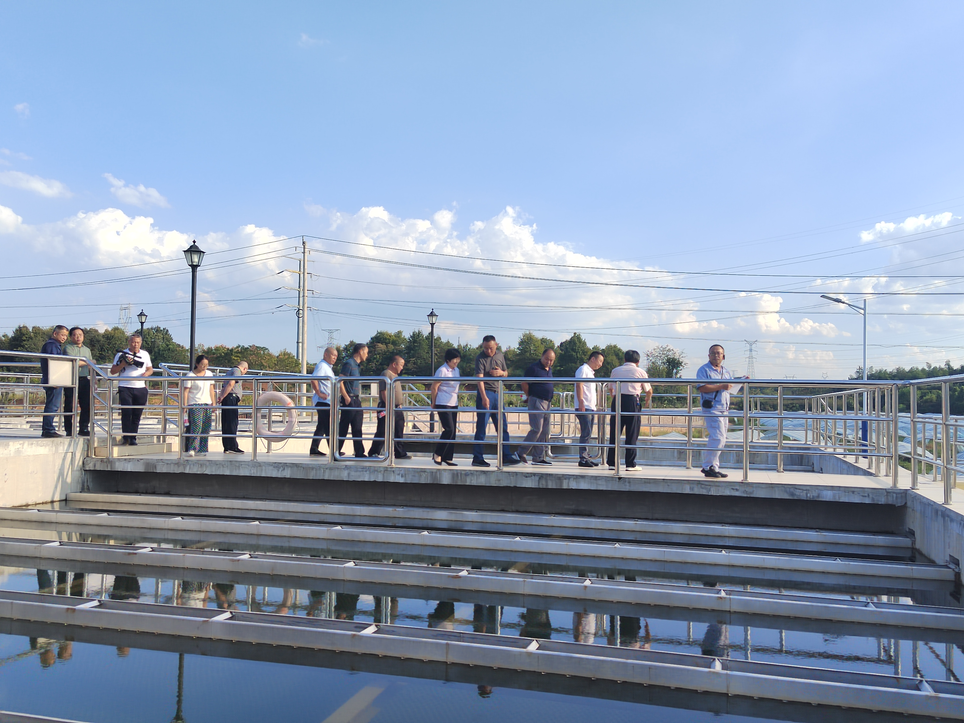 區政協領導一行實地查看了配水混合井、網格絮凝斜管沉淀池、V型濾池、清水池、送水泵房,詳細了解水處理工藝和流程,并聽取橫溝水廠生產運營管理和安全生產管理情況。