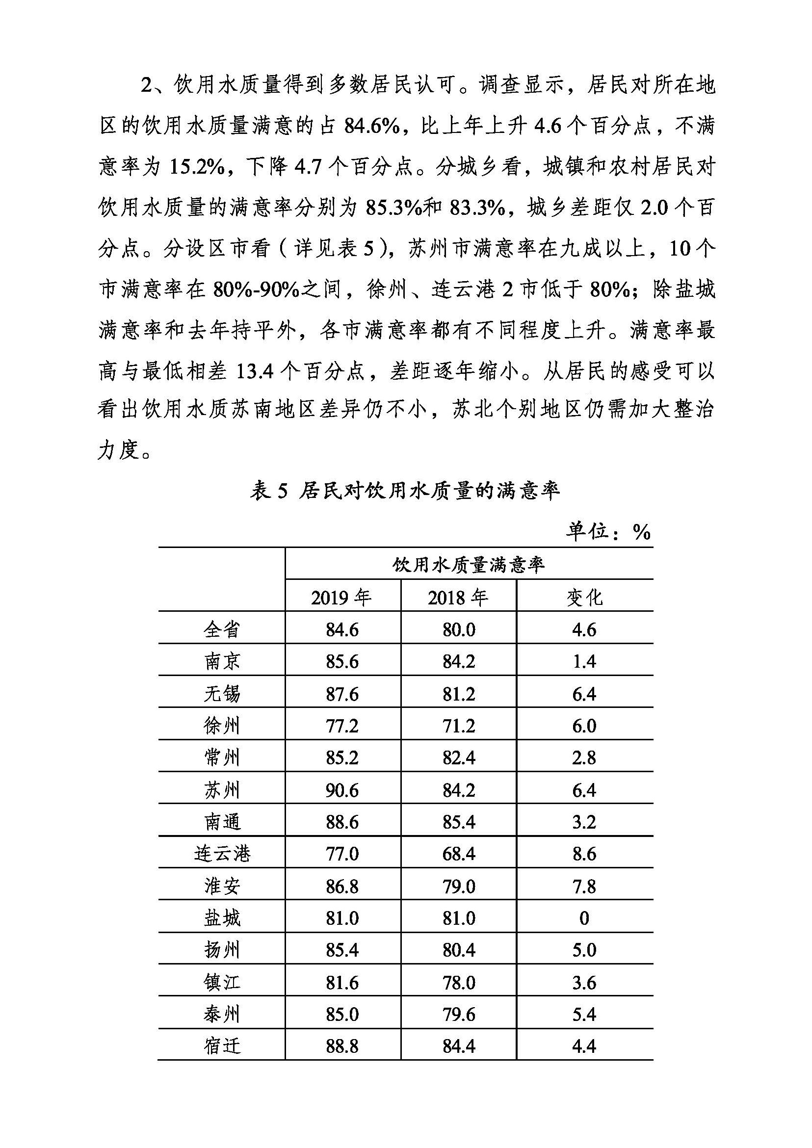 圖:江蘇省生態辦公布的飲用水滿意度調查結果公示