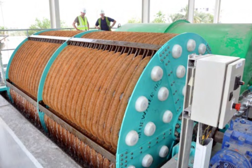 當水流經濾布進入過濾段時,水中的懸浮物被除去,固體留在濾布上。過濾后的水通過中央軸、上升豎井和溢流堰流出裝置。隨著固體顆粒在濾布上的堆積,過濾單元上的液壓阻力增大,從而使濾槽內的水位升高。