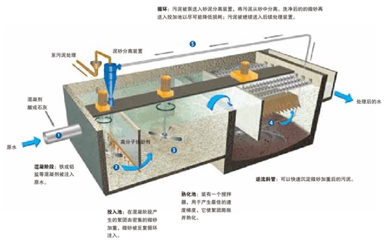 Actiflo工藝是一種加載絮凝和斜板沉淀的結合系統,適用于給水處理和排水三級懸浮物去除。