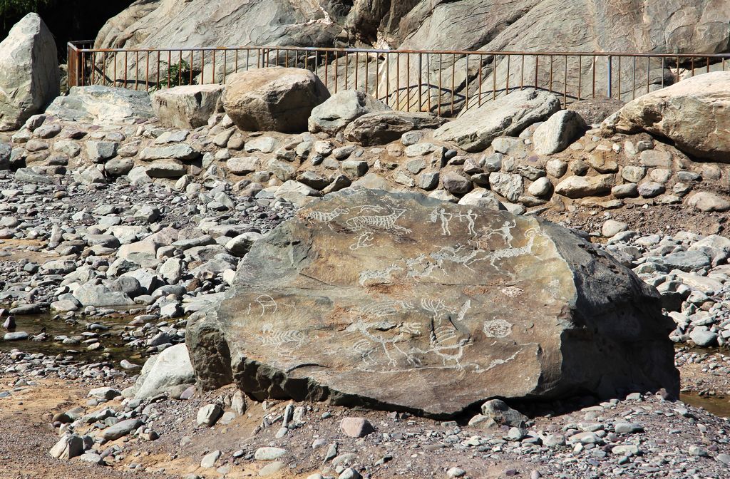 噠噠的馬蹄,穿過(guò)碧血黃沙,來(lái)到巨壁聳峙的山口,在巍峨絕嶺的腳下,一條中華民族的母親河自上游奔騰而下,轉(zhuǎn)過(guò)中寧,開(kāi)始變得溫柔起來(lái)。在這里,游牧文明遇見(jiàn)了沃野千里,而文明在交融與衍化中,賦予這片土地一個(gè)狂野而輕靈的名字:賀蘭。 “賀蘭”一詞,是匈奴一只部落賀賴種的音轉(zhuǎn)。最早見(jiàn)于《晉書(shū)·北狄匈奴傳》。據(jù)記載,公元284年到287年,西晉太康五年到太康八年,由塞北進(jìn)入內(nèi)地降附的匈奴人共分三批約有十三萬(wàn)余人,《晉書(shū)》記載說(shuō):匈奴之類,總謂之北狄。北狄以部落為類,其入居塞者有屠各種、鮮支種、寇頭種……十九種,其中之一便是“賀賴種”。 在古代,賀蘭有著極其重要的邊防地位,不僅是幾大朝代的的西北門(mén)戶,也是西夏王朝賴以發(fā)展的寶庫(kù)。它地處我國(guó)農(nóng)耕民族和游牧民族的交接地帶,民族遷移十分頻繁,在歷史上是游牧民族通往中原地區(qū)的重要屏障,被譽(yù)為"朔方之保障,沙漠之咽喉"。眾多的谷口平時(shí)是貿(mào)易交通要道,戰(zhàn)時(shí)就是兵家必爭(zhēng)之地。唐代詩(shī)人王維有詩(shī)寫(xiě)到:"賀蘭山下陣如云,羽樹(shù)交馳日夕聞。"以"陣如云"、"羽榭交馳"形象地描繪了激烈的戰(zhàn)爭(zhēng)場(chǎng)面。雄偉的賀蘭山,巍巍向西看,她高瞻遠(yuǎn)矚,傲視蒼穹;放眼廣闊無(wú)垠的蒙古高原,面對(duì)強(qiáng)勁冷酷的凜冽北風(fēng),迎擊西伯利亞的滾滾寒流,不屈不撓,英勇抗掙,頑強(qiáng)向上。她像馳騁沙場(chǎng)的將軍,更像祖國(guó)母親的赤子,捍衛(wèi)著祖國(guó)的邊防,保衛(wèi)著人民的安祥。 賀蘭也曾經(jīng)是匈奴、鮮卑、突厥、回鶻、吐蕃、黨項(xiàng)等北方少數(shù)民族駐牧游獵、生息繁衍的地方。他們把生產(chǎn)生活的場(chǎng)景,鑿刻在賀蘭山的巖石上,來(lái)表現(xiàn)對(duì)美好生活的向往與追求,再現(xiàn)了他們當(dāng)時(shí)的審美觀、社會(huì)習(xí)俗和生活情趣。在南北長(zhǎng)200多公里的賀蘭山腹地,就有20多處遺存巖畫(huà)。其中最具有代表性的是賀蘭口巖畫(huà)。賀蘭口距銀川城50余公里,位于賀蘭山中段的賀蘭縣金山鄉(xiāng)境內(nèi),山勢(shì)高峻,海拔1448米,俗稱“豁了口”。山口景色幽雅,奇峰疊障,潺潺泉水從溝內(nèi)流出,約有千余幅個(gè)體圖形的巖畫(huà)分布在溝谷兩側(cè)綿延600多米的山巖石壁上。畫(huà)面藝術(shù)造型粗獷渾厚,構(gòu)圖樸實(shí),姿態(tài)自然,寫(xiě)實(shí)性較強(qiáng)。以人首像為主的占總數(shù)的一半以上。其次為牛、馬、驢、鹿、鳥(niǎo)、狼等動(dòng)物圖形。人首像畫(huà)面簡(jiǎn)單、奇異,有的人首長(zhǎng)著犄角,有的插著羽毛,有的戴尖形或圓頂帽。表現(xiàn)女性的巖畫(huà),有的戴著頭飾,有的挽著發(fā)髻,風(fēng)姿秀逸,再現(xiàn)了幾千年前古代婦女對(duì)美的追求。有的大耳高鼻滿臉生毛,有的口銜骨頭,有的面部有條形紋或弧形紋。動(dòng)物圖形構(gòu)圖粗獷,形象生動(dòng),栩栩如生。有奔跑的鹿,有雙角突出的巖羊,有飛馳的駿馬,有搖尾巴的狗,有飛鳥(niǎo)的圖形和猛獸的形象,有部分人的手和太陽(yáng)的畫(huà)面,還有原始宗教活動(dòng)的場(chǎng)面。
