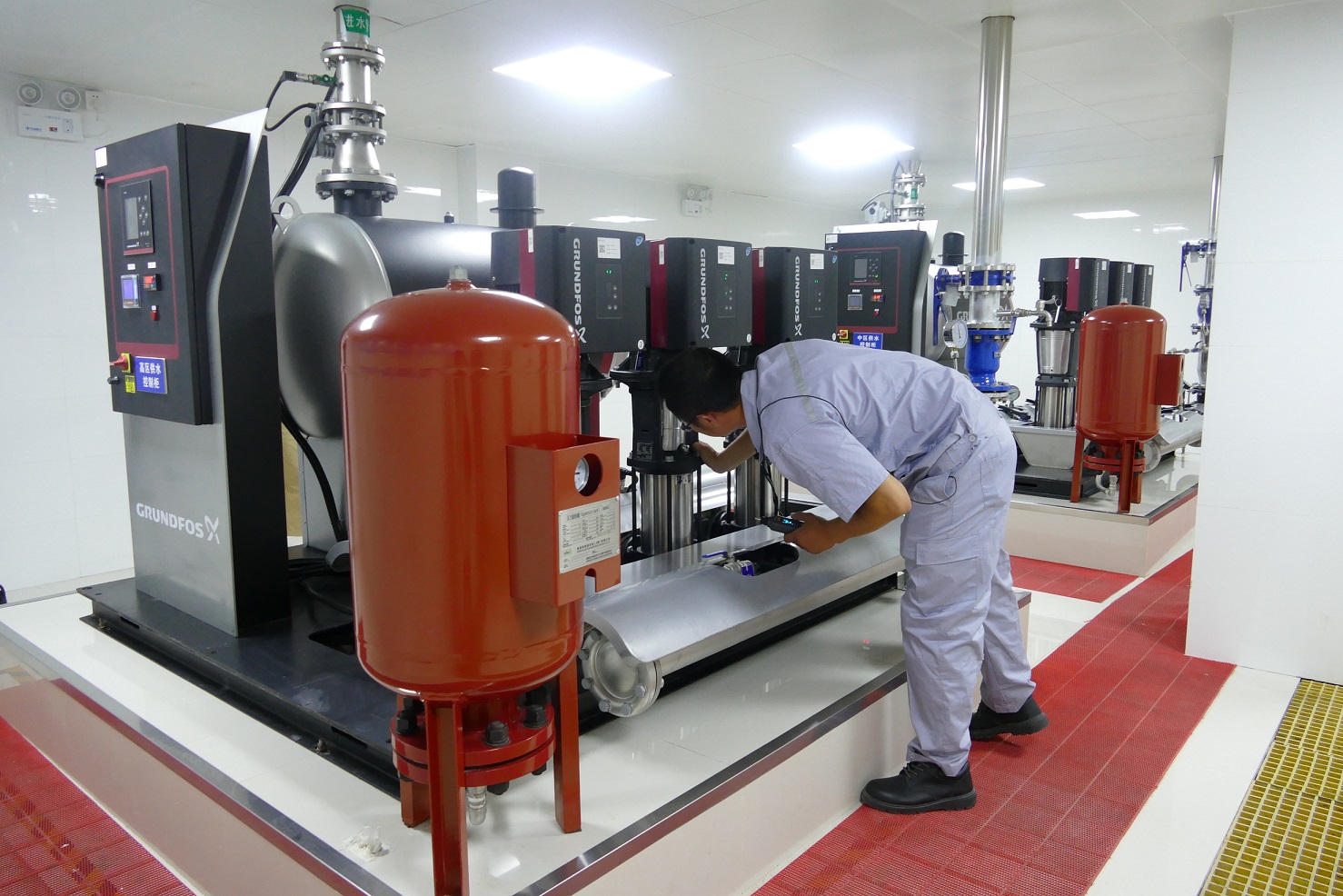 圖2:生產(chǎn)人員巡檢 機(jī)電設(shè)備部把好“設(shè)備安全”關(guān) 每年的高峰供水來(lái)臨前,宿遷銀控自來(lái)水有限公司都會(huì)制定詳實(shí)的設(shè)備保養(yǎng)、維護(hù)、改造計(jì)劃,確保各項(xiàng)設(shè)備運(yùn)行狀況良好,同時(shí)要求,在高峰供水期間,每日要對(duì)機(jī)組進(jìn)行加密巡檢,特別是對(duì)易產(chǎn)生高溫運(yùn)轉(zhuǎn)的設(shè)備進(jìn)行專(zhuān)項(xiàng)養(yǎng)護(hù)。目前該公司需檢測(cè)、檢修的主要、重要設(shè)備遍布于兩個(gè)水廠、7座泵站共1257臺(tái),工作人員根據(jù)片區(qū),不間斷進(jìn)行巡查。除了點(diǎn)巡檢,機(jī)電設(shè)備部所有人員排班進(jìn)行夜間值班,保證24小時(shí)在廠,出現(xiàn)設(shè)備問(wèn)題立即解決,保障生產(chǎn)安全。