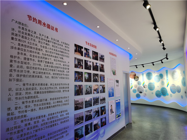 座落于聯(lián)合水務(wù)集團(tuán)宿遷供水公司第二水廠院內(nèi)的宿遷市水文化展示館,于2012年6月正式落成,是由聯(lián)合水務(wù)集團(tuán)投資380多萬元,全資打造的一座純公益性科普教育基地,占地面積500平方米,是蘇北地區(qū)最具代表性的以水文化為主題的展示館,先后獲批“江蘇省節(jié)水教育基地”、“江蘇省科普教育基地”,對(duì)于宿遷市被正式命名為“國(guó)家節(jié)水型城市”起到了重要的推動(dòng)作用。宿遷市水文化展示館主脈絡(luò)從水的根源出發(fā),追尋城市發(fā)展軌跡展現(xiàn)自來水事業(yè)沿革,以“為有源頭活水來”為主題,分為“論水”、“治水”、“節(jié)水”三大主題展區(qū),采用“聲、光、電、影”等多媒體展示手段,對(duì)水文化進(jìn)行宣傳,具有鮮明的科普性、觀賞性,更具有節(jié)水的宣傳教育性,自對(duì)外開放至今,已累計(jì)接待各級(jí)政府領(lǐng)導(dǎo)、全國(guó)各地業(yè)內(nèi)兄弟單位參觀考察及中小學(xué)生、社會(huì)團(tuán)體參觀學(xué)習(xí)等6000余人次,成為宿遷市獨(dú)具魅力的“節(jié)水教育名片”。