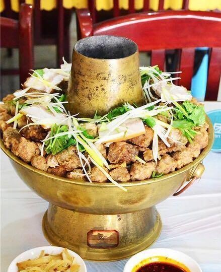 圖:絳州銅火鍋 銅火鍋做法 絳州銅火鍋看似簡單,卻不僅僅是鋪幾層菜,添上湯那么簡單,底湯怎么熬,菜品怎么放,都十分講究。 新絳要說銅火鍋哪家好,當(dāng)屬合勝火鍋。絳州合勝火鍋沿襲了傳統(tǒng)的火鍋工藝,但其老板韓合勝和老板娘李春英又根據(jù)當(dāng)?shù)厝罕姷娘嬍沉?xí)慣,進行了科學(xué)的配料和烹調(diào),以“肉多、價低、湯鮮美”聲名遠揚。 做銅火鍋的關(guān)鍵之處是湯汁,俗話說“火鍋好不好,嘗湯就知道”,說的就是這個理。 合勝火鍋光是熬制底湯就需5小時~6小時,里面有整只雞、豬大骨、豬肉,再配以草果、香葉、桂皮、小茴香等20多種香辛料,一直大火熬制。然后就是配湯,醬油、鹽、味精、調(diào)料粉放多少,也得稱量,只為保證味道的純正。用料實在、工序復(fù)雜,這也是為什么新絳銅火鍋湯好喝的原因之一。此外,湯汁經(jīng)過與肉、菜同煮,除了原湯的濃郁,還有了菜的清香與肉的鮮美,味道更豐富,口感更佳,尤其在秋冬季,吃完火鍋后,再喝上一口湯,全身都開始變得暖和起來。